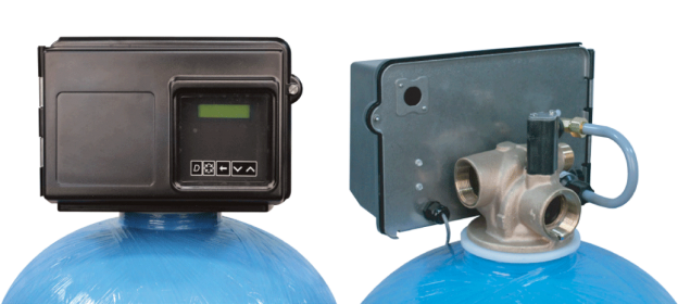 - SXT– Large LCD display and user-selectable time clock or metered function; usable for filtration and softener systems