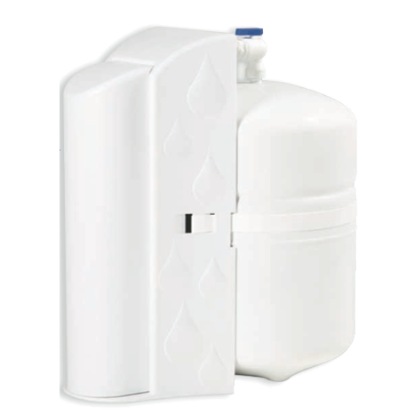 The system includes a non-metallic faucet, a two gallon white storage tank, tubing, and quick connect fittings for a fast and easy installation.