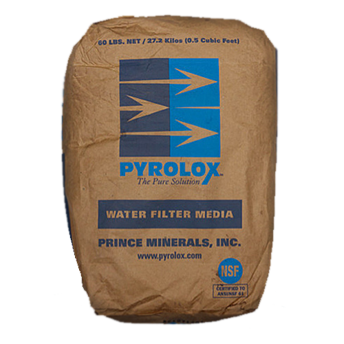 A naturally mined ore, Pyrolox® is a mineral form of manganese dioxide which has been used in water treatment for more than 75 years. Pyrolox® is a granular filtration media for hydrogen sulfide, iron and manganese reduction. Pyrolox® functions as a catalyst, but itself remains relatively unchanged.